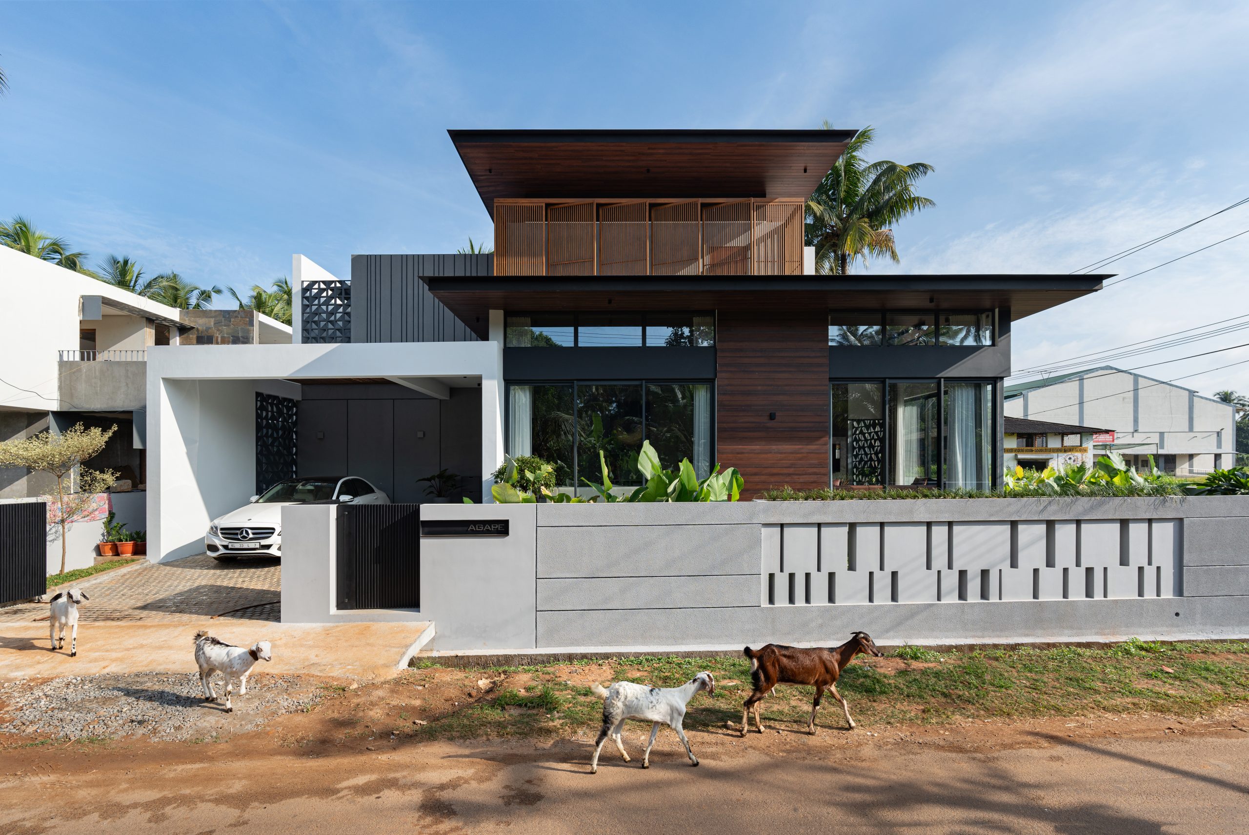 Elevating opulence to new heights, the Master bedroom unveils an open-to-sky courtyard, embraced by a tri-fold door that ushers the breathtaking vistas within. An en-suite sanctuary awaits, where the shower area unveils an enchanting connection with the sky, bestowing upon its occupant a much-needed respite in the lap of tranquility. The symphony of celestial alignment continues, as the prayer room and even the car porch unveil themselves to the expanse above, amplifying the residence’s aura of serenity. Strategically sculpted to shield against the sun’s unwavering gaze, the western facade stands tall. Across the home, double-glazed glass shields the interior from solar heat. On the upper floors, metal screens adorned with the embrace of wooden panels in the balcony rotate to open to beautiful vistas. Aloft, the roof extends its sheltering canopy, tailored harmoniously to the nuances of Kerala’s climatic temperament.
