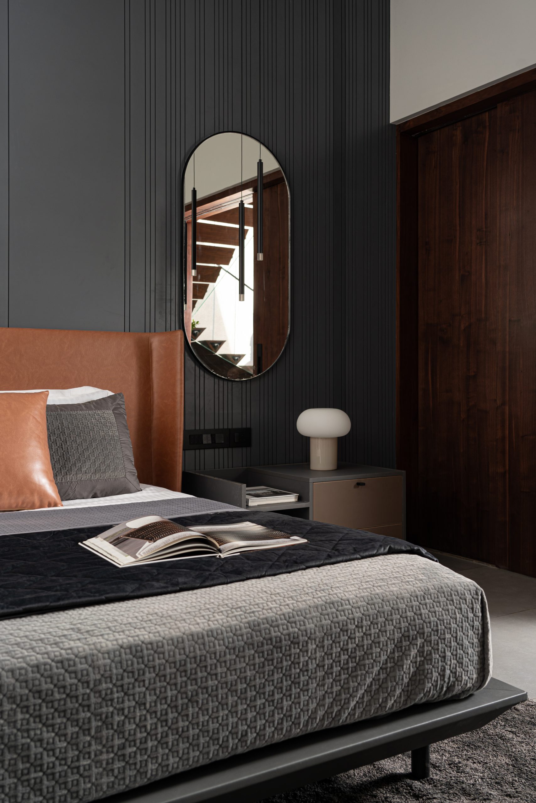 Immersed in a palette of nuanced greys, crisp whites, profound blacks, and the warmth of natural wood, the residence emanates an exterior ambiance of refined neutrality. Once inside, each chamber, a portal to the allure of the surrounding paddy fields and the expansive heavens above, invites in the rhythms of nature. It captivates a seamless embrace from dawn to dusk, painting the insides with its changing tones.